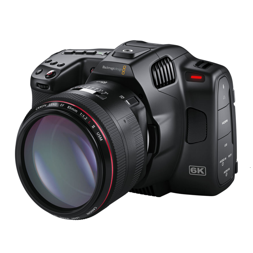 La BMPCC 6K es la cámara que más aparece en sets de producción independiente en Colombia cuando el presupuesto es ajustado pero las exigencias de imagen son altas. Graba en BRAW hasta 6K, tiene montura EF compatible con décadas de lentes Canon, y produce un color que en DaVinci Resolve prácticamente no necesita etalonaje correctivo solo creativo.
